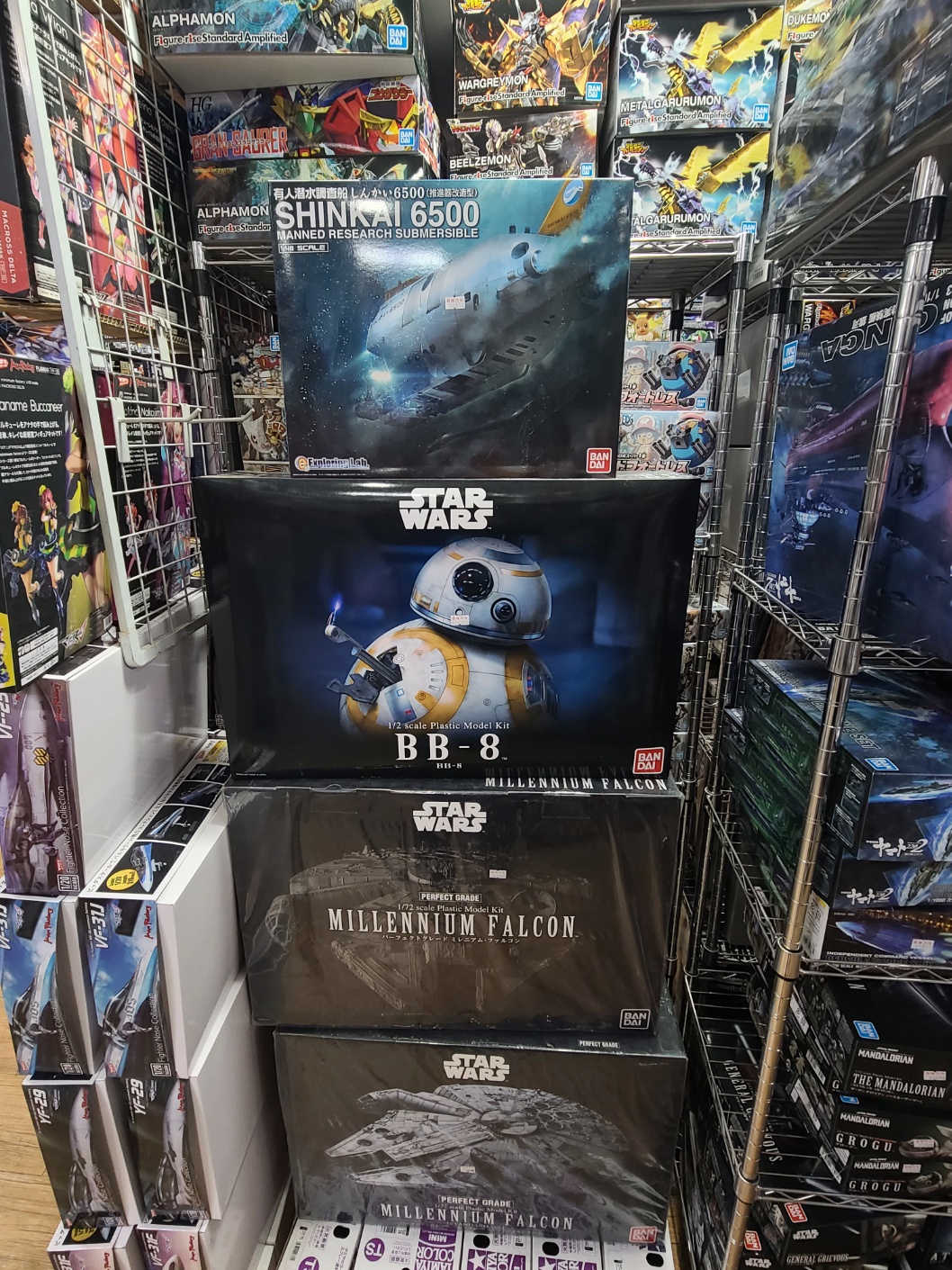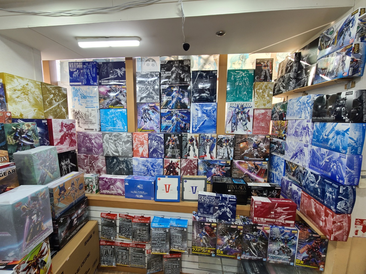 좌회전하면 건담 프라모델이 줄지어 있습니다. HG, MG, PG 상관없이 가지런히 진열되어 있는 것을 볼 수 있고, 매장 입구에도 한정판들이 함부로 놓여 있는 것을 볼 수 있습니다. 특히 MG를 좋아해서 계속 주시하고 있습니다. 화려한 프라모델도 있고, 좀처럼 구하기 힘든 RG도 있어서 많이 고민했습니다.